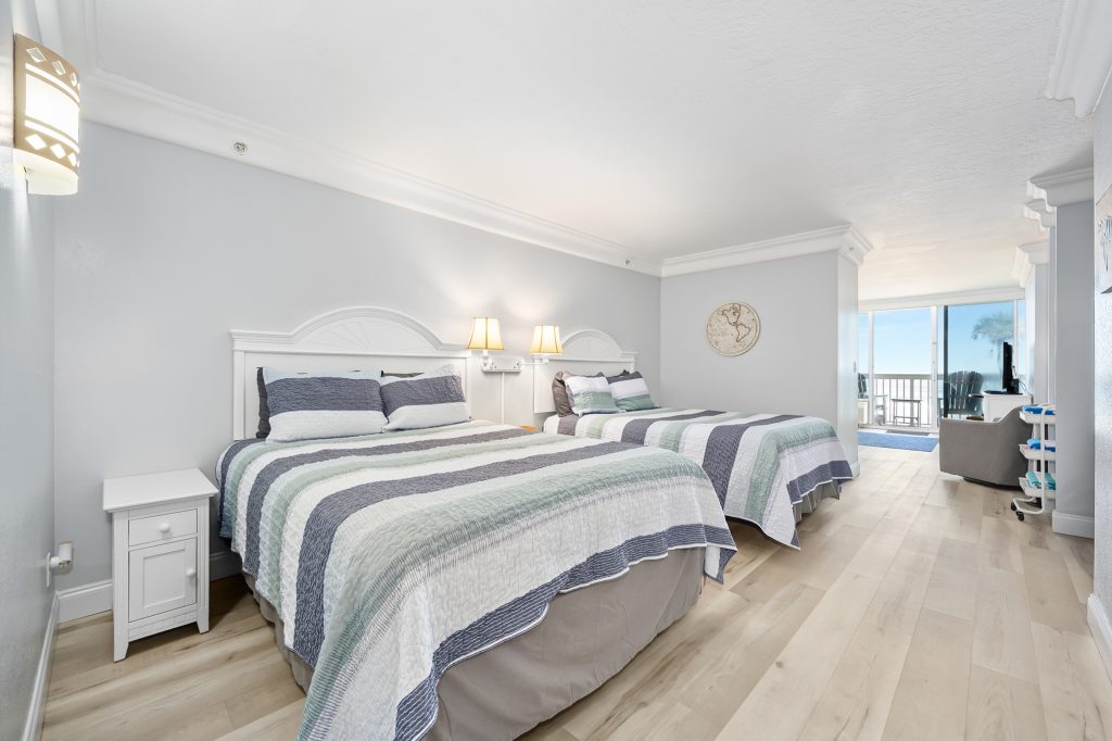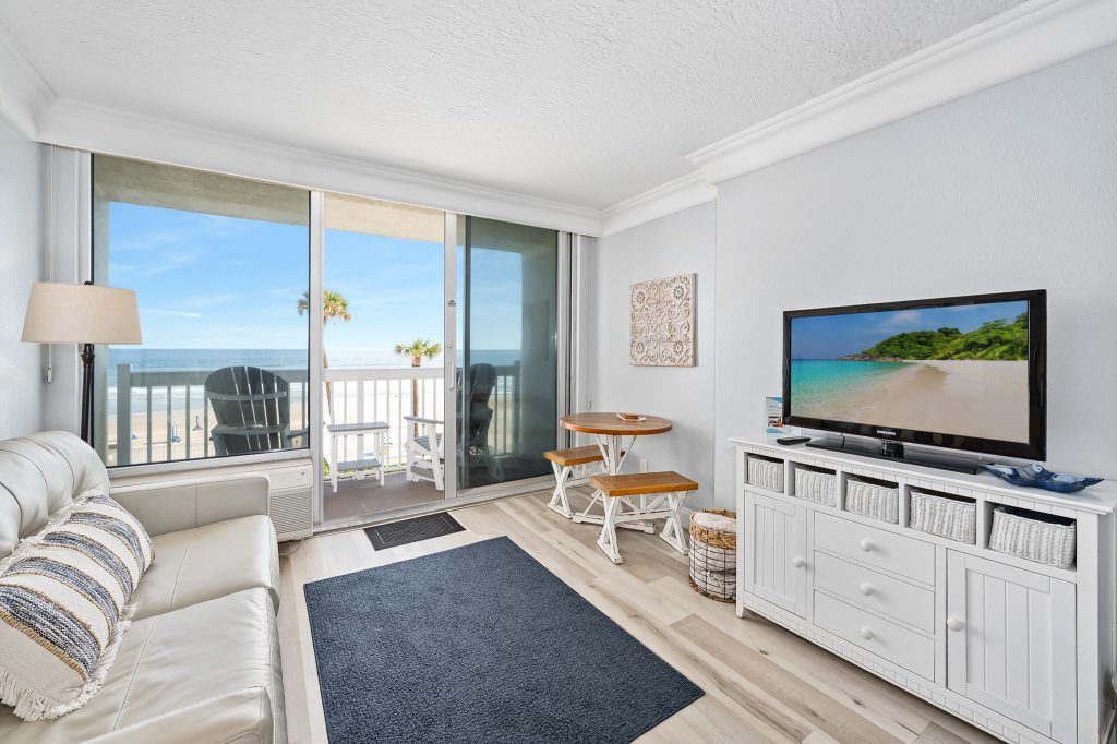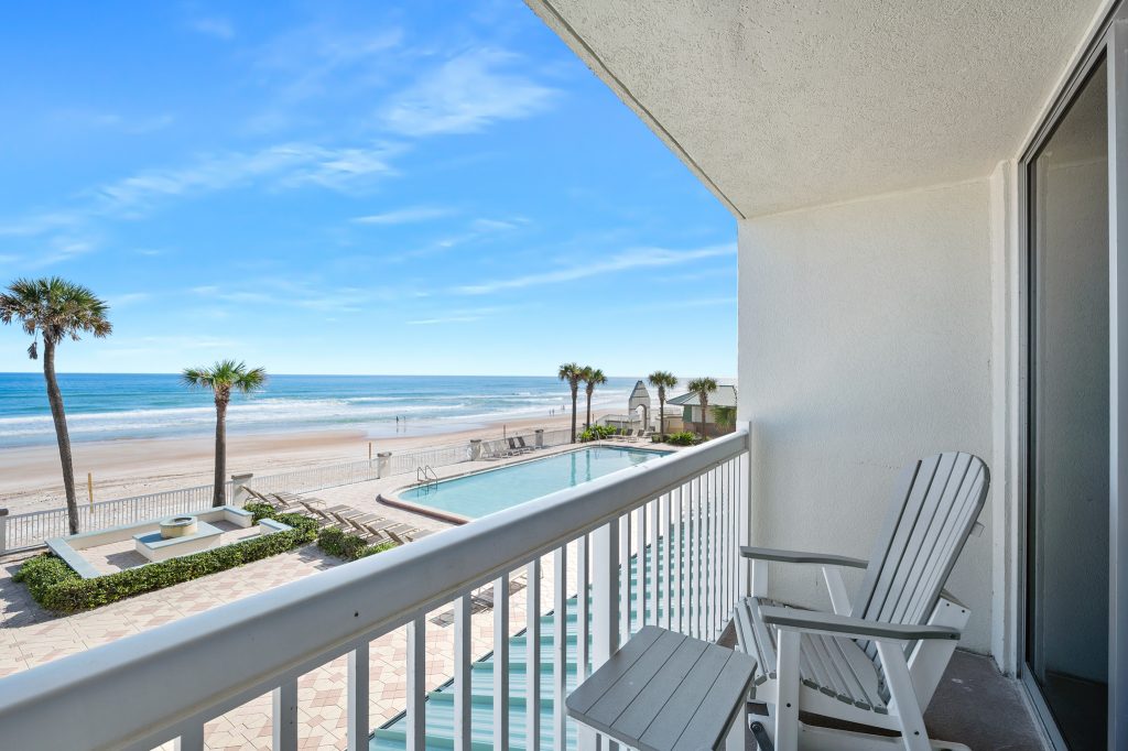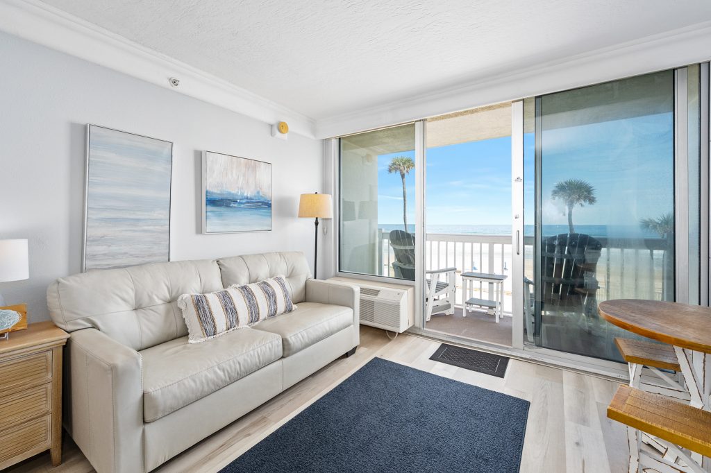 Step into a breezy, oceanfront 1-bedroom condo designed for pure relaxation and unforgettable views. Unit 256 brings you front-row Atlantic scenery, a private balcony for sunrises, and a bright coastal interior that feels like your own beach house retreat. With two queen beds, a full kitchen, and a comfy living area, this peaceful escape delivers the perfect Daytona Beach experience — ocean first, everything else second.